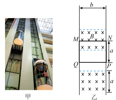 将受到磁场力,从而使轿厢悬停、向上或向下运动。已知导线框的长为b、宽为a、总电阻为R,重力加速度为g,摩擦和空气阻力可忽略,则: