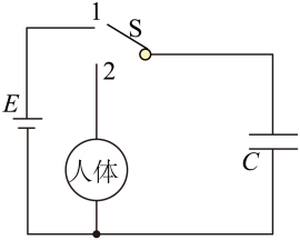 原理图,在一次模拟治疗中,将开关S接到位置1,电容器充电后电压为6kV;将开关S接到位置2,电容器在2ms内通过人体完成放电,已知电容器的电容为30μF,则这次放电通过人体组织的平均电流为( )