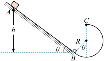 的粗糙斜面和固定圆轨道相切于B点,将一质量m=1kg的小滑块从斜面上A点静止释放,滑块沿轨道运动恰好通过最高点C。已知A、B两点间的高度差h=1.725m,圆轨道光滑且半径R=0.5m。g=10m/s2,