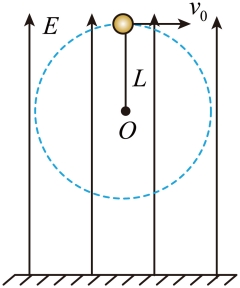 的小球(可看作质点)与不可伸长的绝缘细绳相连,细绳另一端固定在O点,细绳长度为L,O点距离水平地面的高度为2L,空间存在竖直向上的匀强电场。现在最高点给小球一水平向右的初速度