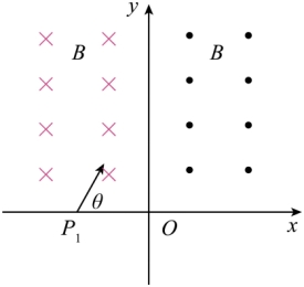 的初速度v0进入磁场,经过一段时间t,第一次垂直经过y轴,求P2与O点的距离。并判断电子再次返回x轴时,速度与x轴的夹角。