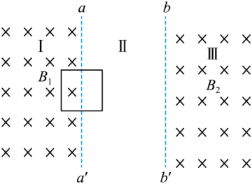将光滑水平面分成三个区域,其中区域I和区域III分布有竖直向下的匀强磁场。区域I中磁场的磁感应强度随时间变化的关系为