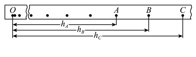 一条纸带。在纸带上选取三个连续打出的点A、B、C,测得它们到起始点O的距离分别为hA、hB、hC。已知当地重力加速度为g,打点计时器打点的周期为T。设重物的质量为m。从打O点到打B点的过程中,重物的重力势能的减少量ΔEp=______,动能的增加量ΔEk=______。