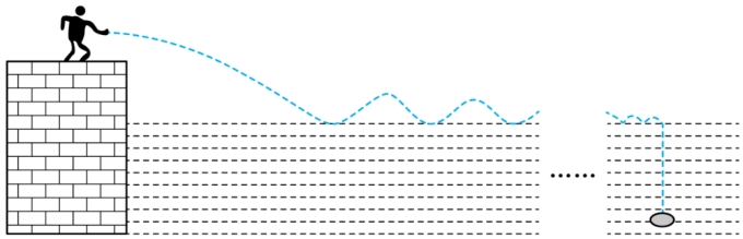 8m/s水平抛出,小石片先在水面上弹跳数次,当沿水面的速度减为零时会下沉。小石片每次接触水面时都受到恒定的作用力,其中水平分力恒为