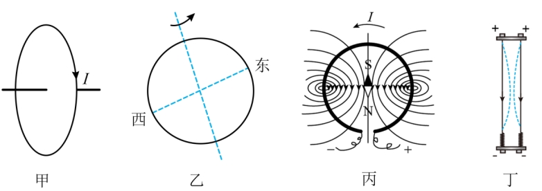 D.丁图中,两根通电方向相同的长直导线相互吸引,是通过磁场作用实现的