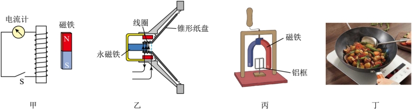 D.图丁中家用电磁炉加热食物是利用涡流工作的