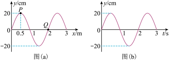 【详解】A.由图(a)可知,该波的波长为2m;由图(b)可知,该波的周期为2s,则该波的波速为