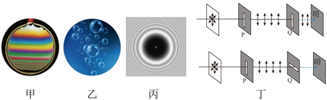 D. 图丁中的P、Q是偏振片,当P固定不动,缓慢转动Q时,光屏上的光亮度将一明一暗交替变化,此现象表明光波是纵波