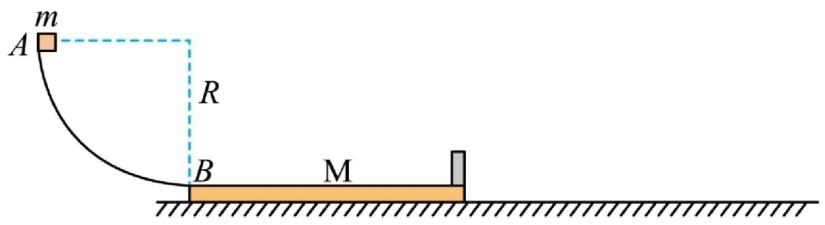 的物块从圆弧圆心的等高点A由静止释放,经B点滑上木板。已知物块与长木板上表面间的动摩擦因数为