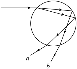 5. 彩虹的形成原理可简化为如图,阳光由空气射入球形水滴后,可分成红、橙、黄、绿、蓝、靛、紫七种色光,其中a、b是射出的某两种单色光(其他色光没有画出),则下列说法正确的是( )