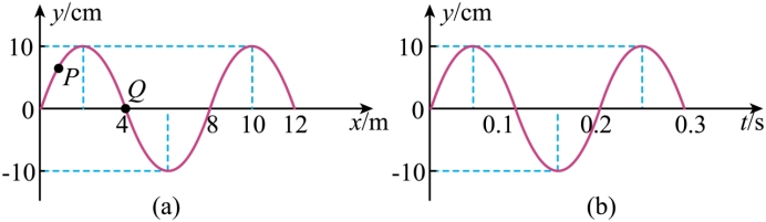 时刻,质点Q在平衡位置向上振动,根据图(a),该波沿x轴正方向传播,B正确;
