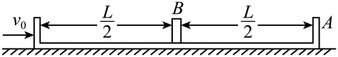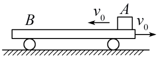 16. 在光滑水平面上有一凹槽A,中央放一小物块B,物块与左右两边槽壁的距离如图所示,L为1.0m,凹槽与物块的质量均为m,两者之间的动摩擦因数μ为0.05,开始时物块静止,凹槽以v0=5m/s初速度向右运动,设物块与凹槽槽壁碰撞过程中没有能量损失,且碰撞时间不计,g取10m/s2,求: