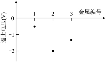 1.在光电效应实验中,用频率和强度都相同的单色光分别照射编号为1、2、3的金属,所得遏止电压如图所示,关于光电子最大初动能