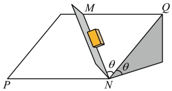 ,交线为PN,坡面内QN与PN垂直,挡板平面与坡面的交线为MN,