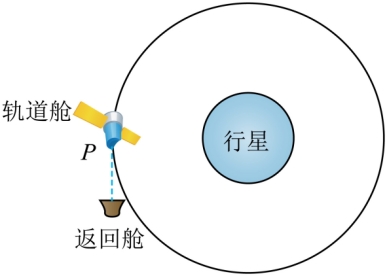 。如图所示,轨道舱在P点沿运动方向向前弹射返回舱,分开瞬间返回舱相对行星的速度大小为