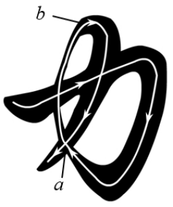 1.书法课上,某同学临摹“力”字时,笔尖的轨迹如图中带箭头的实线所示。笔尖由a点经b点回到a点,则()