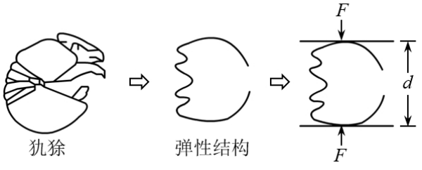 4.如图,某压力传感器中平行板电容器内的绝缘弹性结构是模仿犰狳设计的,逐渐增大施加于两极板压力F的过程中,F较小时弹性结构易被压缩,极板间距d容易减小;F较大时弹性结构闭合,d难以减小。将该电容器充电后断开电源,极板间电势差U与F的关系曲线可能正确的是