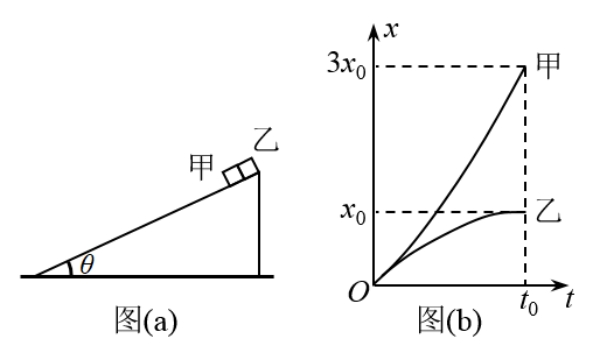,整个过程中斜面相对地面静止。甲和乙的位置x与时间t的关系曲线如图