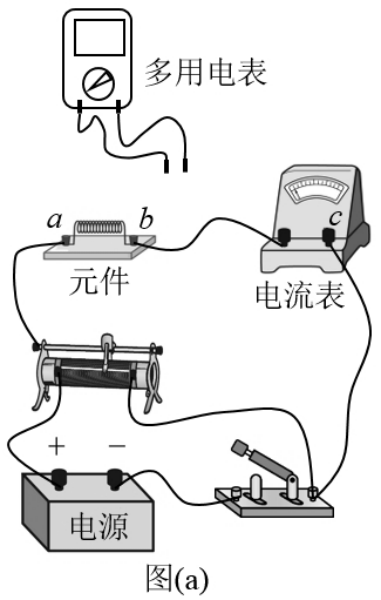 当表笔分别连a、c接点时测得是元件和电流表两端的电压和电流,当表笔分别连a、b接点时测得是元件两端的电压和电流,故同等电流