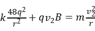 ,距离负电荷的距离为x,从N点到速度反向点由能量守恒和面积定律可得: