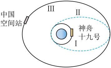 D. 神舟十九号在轨道I上运行的周期比中国空间站在轨道III上运行的周期小