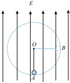 15. 如图,竖直向上的匀强电场中,用长为L的绝缘细线系住一带电小球,在竖直平面内绕O点做圆周运动。图中A、B为圆周上的两点,A点为最低点,B点与O点等高。当小球运动到A点时,细线对小球的拉力恰好为0,已知小球的电荷量为