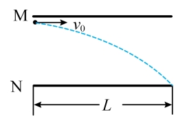 14. 如图所示,平行板电容器的两个极板M、N长均为L,极板间距离为d。一个质量为m、电荷量为q的带电粒子从M的左端沿板方向以速度