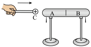 5. 如图所示,在感应起电实验中,带正电的小球C靠近不带电的枕形体,下列说法正确的是()