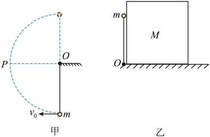 (3)如图乙所示,杆竖直时小球靠着各表面都光滑的正方体木块,在微小扰动下细杆倒向木块,当杆与竖直方向夹角为60°时小球与木块恰好分离,求木块的质量M。