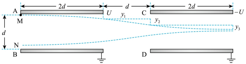 (2)求粒子M从进入AB板间到飞出CD板间的过程中,垂直板面方向的偏移量Y;