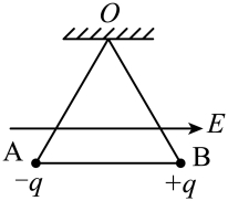 之间用第三根橡皮筋连接起来。由于空间存在水平向右的匀强电场,平衡时三根橡皮筋的长度均为原长的