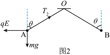 球再次平衡时,小球A受力如图2所示,由平衡条件可得