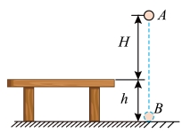 4. 如图所示,质量m的小球,从离桌面H高处A点由静止自由下落,桌面离地面的高度h,若以桌面为参考平面,重力加速度为g,下列说法正确的是( )