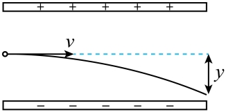 相同,E、L相同,则y与q成正比,两粒子的电荷量之比为1:2,侧位移y之比为1:2。