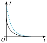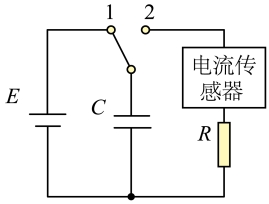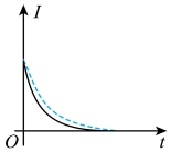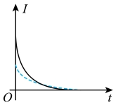 10. 某同学用电流传感器进行电容器放电现象研究,按照图示电路连接电路,将开关与1端连接。充电完毕后,将开关掷向2端,测得电流随时间变化的曲线如下列图中实线所示。在重复实验时,该同学将电源电压变为原来的两倍,其它实验条件不变,则重复实验所得的放电曲线