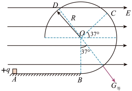 若物体能够通过O点上方与竖直方向成37°的位置D,则也不会脱离轨道,设刚好到该位置时圆轨道半径为r2,