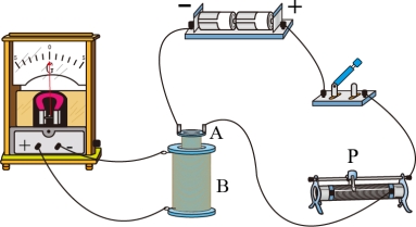 阻值减小,电路中电流增大,线圈B的磁通量增大,根据楞次定律可知电流表G的指针向右偏转,故B错误;