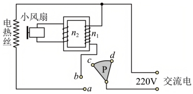 6. 如图所示为某电吹风电路图,a、b、c、d为四个固定触点,可动的扇形金属触片P可同时接触两个触点。