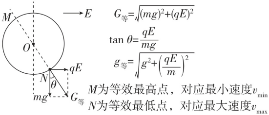 在匀强电场和重力场的共存区域,可以将重力场与电场合二为一,称之为“等效重力场”。