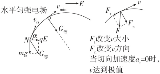 的物体在轨道上仅受重力和电场力运动的最大速度和最小速度。