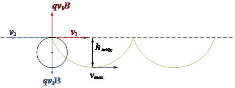 (1)由图可知,当粒子运动到最低点时,此时合速度最大,又由于匀直分速度并不产生竖直位移,故运动下落的最大高度即为匀速圆周运动的最低点,分可求得