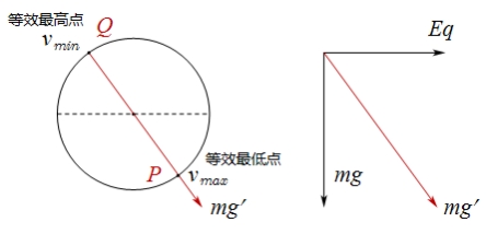 沿合力方向交点为“等效最低点”,背离合力方向交点为“等效最高点”