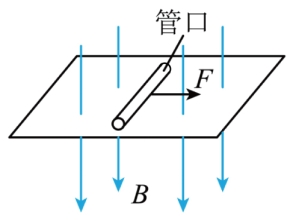 再用左手定则,磁场向里、电流沿导体棒,安培力方向垂直导体棒向右。