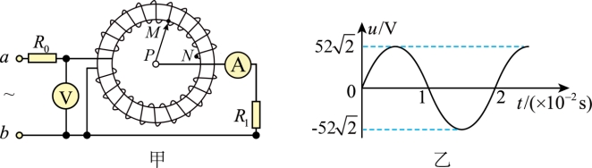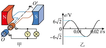 12. 如图甲所示为一台小型发电机的示意图,匝数为100匝的线圈逆时针转动。若从中性面开始计时,产生的电动势随时间的变化规律如图乙所示。已知发电机线圈内阻为