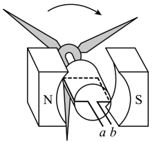 7. 如图所示是一款高空风车的发电模块原理图,两磁极间的磁场可视为匀强磁场,某时刻发电机线圈