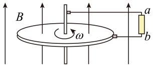 8. 如图所示,法拉第圆盘发电机的两电刷间接有一定值电阻。已知圆盘半径为r,绕中心轴以角速度