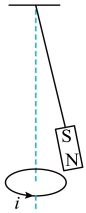 3. 如图所示,一细条形磁铁系于棉线下端形成单摆,摆的正下方固定一水平放置的环形导线。将磁铁从图示位置由静止释放,来回摆动过程中,下列说法正确的是( )