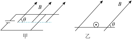 13. 如图甲所示,一质量为m的金属棒垂直放在间距为L的两水平平行导轨上,接触良好通过金属棒的电流为I,匀强磁场的磁感应强度大小为B,磁场方向与导轨平面的夹角为
