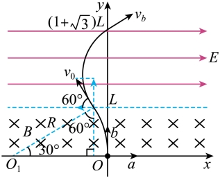 设粒子b在磁场中运动的半径为R,其运动轨迹如图