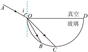 8. 如图所示,OBCD为半圆柱体玻璃的横截面,OD为直径,一束由紫光和红光组成的复色光沿AO方向从真空射入玻璃,紫光和红光分别从B、C点射出。下列说法中正确的是( )